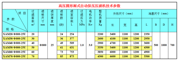 高壓圓形廂式自動保壓壓濾機技術(shù)參數(shù)